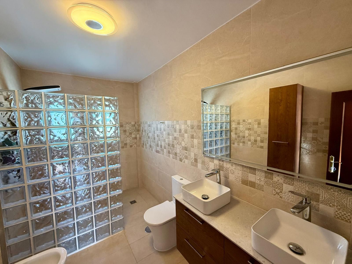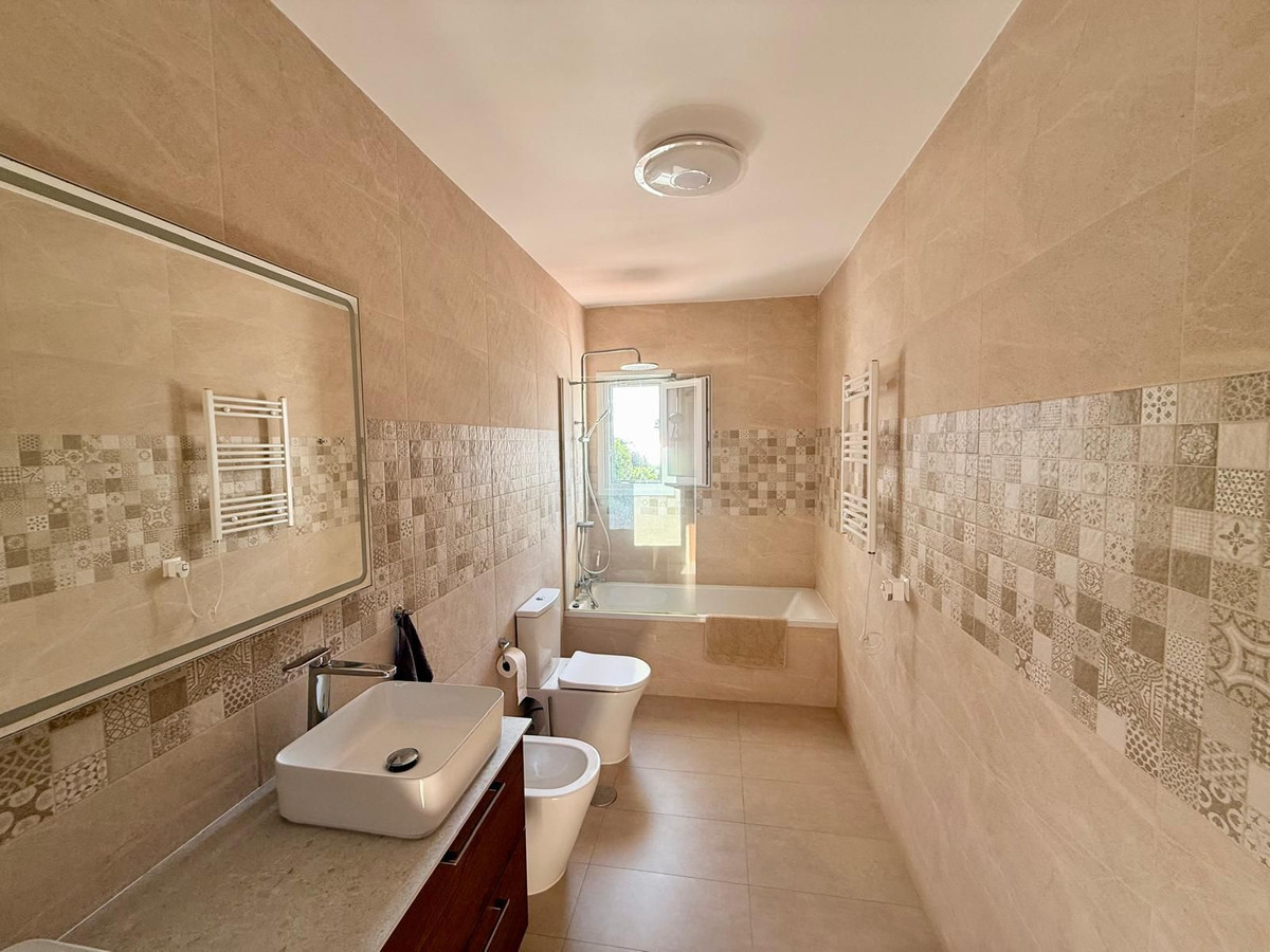 On the first floor the light floods into the 2 bedrooms facing towards the sea: both which have access to a large terrace and have some sea views. The back bedroom is large with a juliet balcony. On this floor there are 2 refurbished bathrooms, one is en-suite to the large master bedroom.