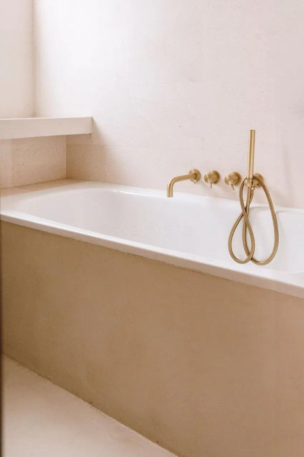 Entrance patio with microcement finish, sunny living area all day long, planters, and outdoor shower with hot and cold water.