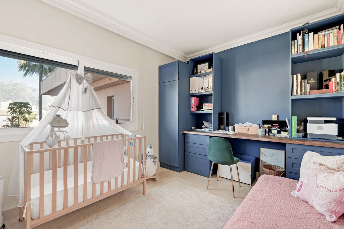 Set within the emblematic community of Magna Marbella, this stunning first floor apartment offers panoramic views to Naranjos Golf and the mountains beyond.