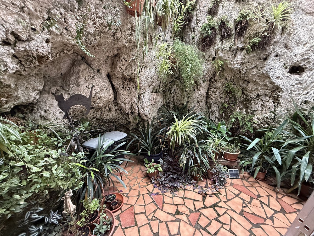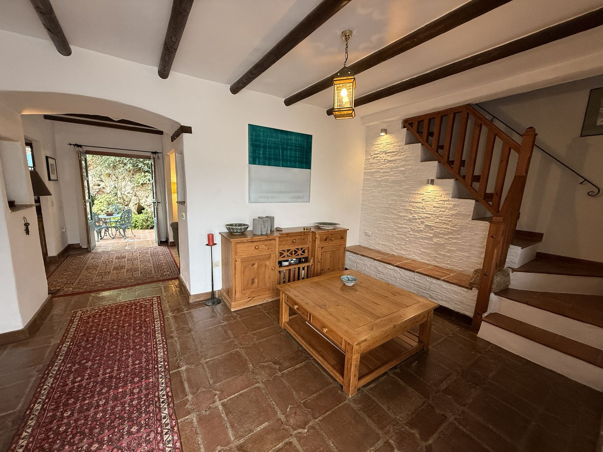 On accède à la maison par un grand hall qui dessert le reste du rez-de-chaussée. À gauche se trouve le second salon avec une cheminée (qui pourrait facilement être transformée en chambre supplémentaire). Le salon principal dispose également d'une cheminée et donne accès à une petite terrasse agrémentée de nombreux pots plantés de divers arbustes.