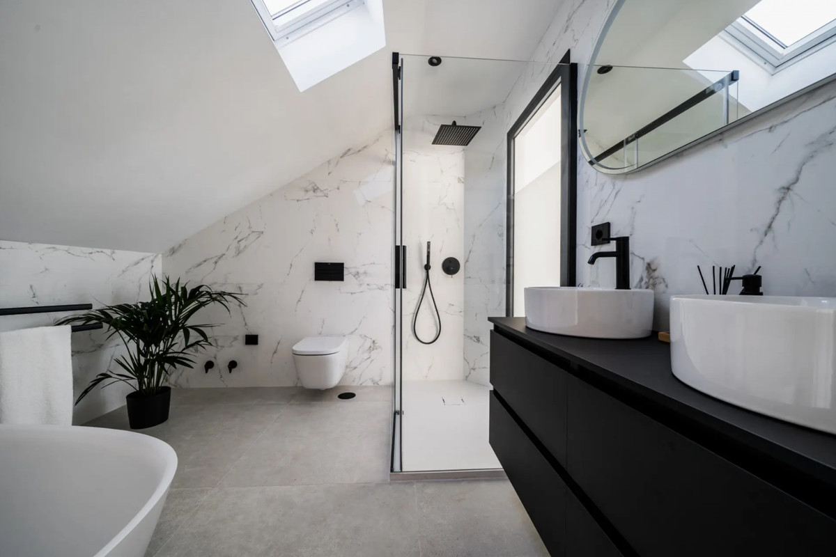 La propriété s'étend sur quatre terrasses offrant des vues variées. La suite parentale au dernier étage dispose d'un magnifique dressing entièrement équipé et d'une terrasse supérieure avec vue panoramique sur la mer. Récemment rénovée pour un confort de vie moderne, la maison de ville est dotée de fenêtres à double vitrage, d'un store électrique et de volets.