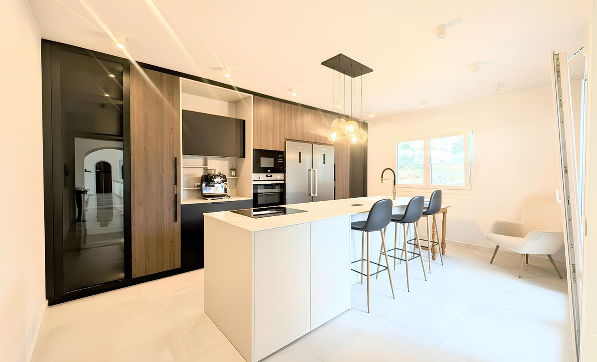 We present an exceptional villa located in one of the most prestigious and tranquil urbanisations of Mijas. This property, built to the highest quality standards, unfolds on a private plot of nearly 1,000 m² (970 m²), offering space, brightness, and a design conceived for enjoyment and family life.