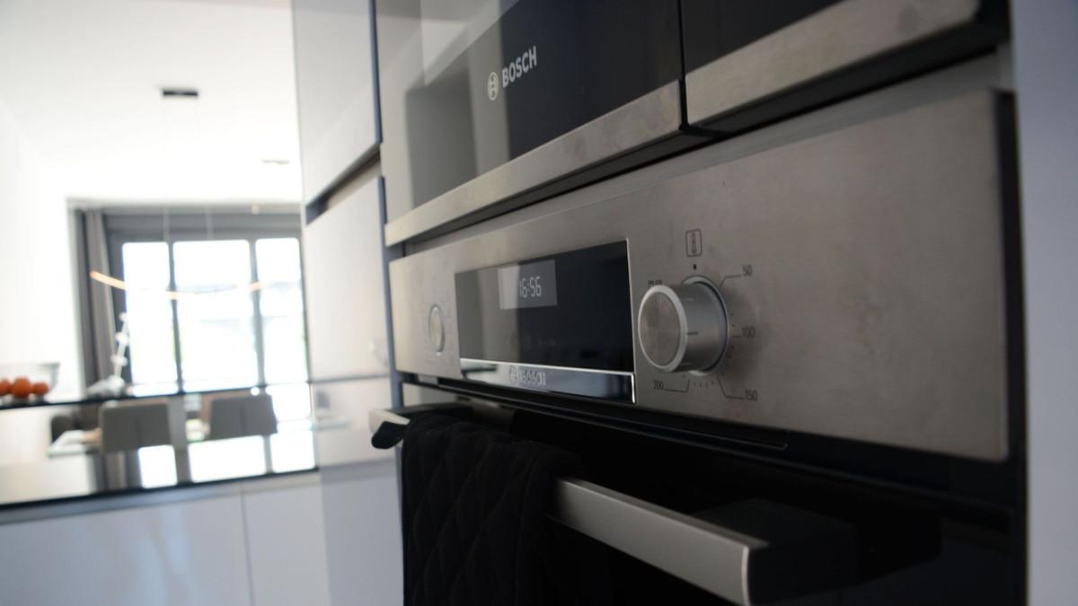 La cuisine de luxe entièrement équipée allie fonctionnalité et élégance, avec des appareils haut de gamme tels qu'une plaque à induction, un four et un micro-ondes intégrés, un lave-vaisselle et un réfrigérateur-congélateur. Le bar à petit-déjeuner s'ouvre sur la pièce de vie principale, idéale pour recevoir. Une buanderie séparée abrite le système hybride aérothermique à eau et au sol, un lave-linge et des rangements supplémentaires. De là, vous accédez directement à la charmante terrasse exposée est, idéale pour prendre votre café du matin et admirer le lever du soleil.