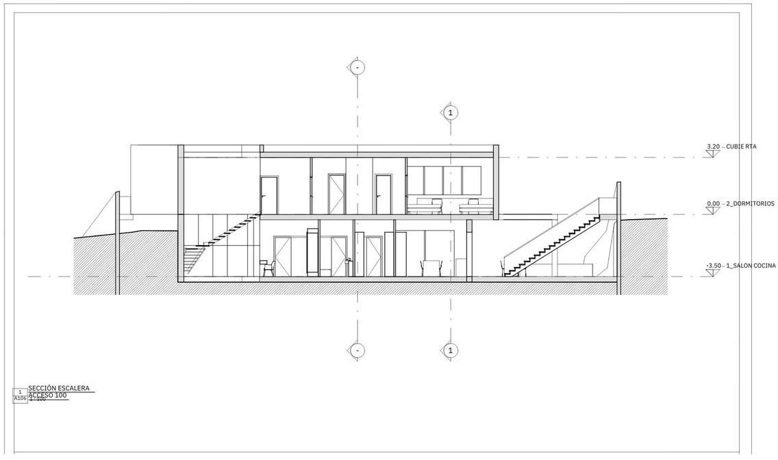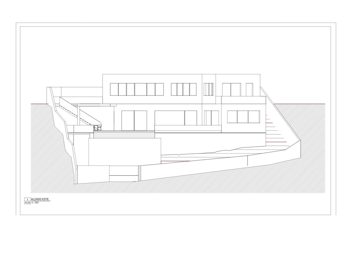 La maison projetée est moderne et fonctionnelle, avec deux niveaux agencés autour d'un patio latéral qui assure éclairage et ventilation.
