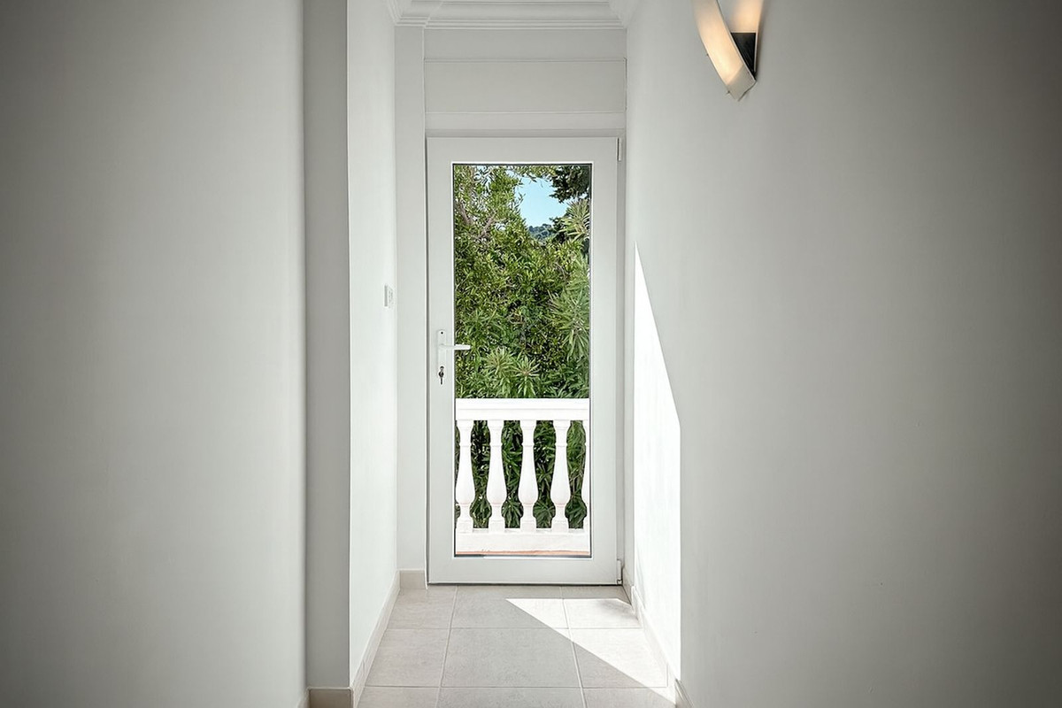 Depuis le hall d'entrée, on accède au vaste séjour par des portes doubles, ou à la grande terrasse qui communique avec le séjour et la cuisine. De la terrasse, on peut admirer un panorama exceptionnel sur la nature environnante.