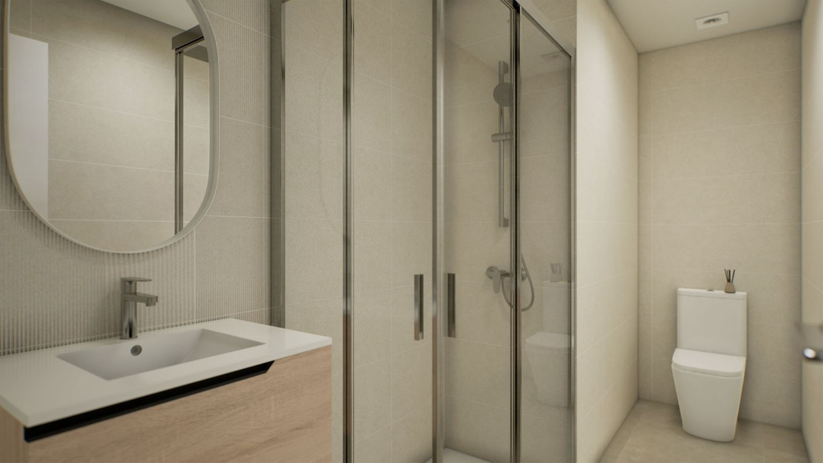 2 chambres, 1 salle de bain, surface construite 64 m².