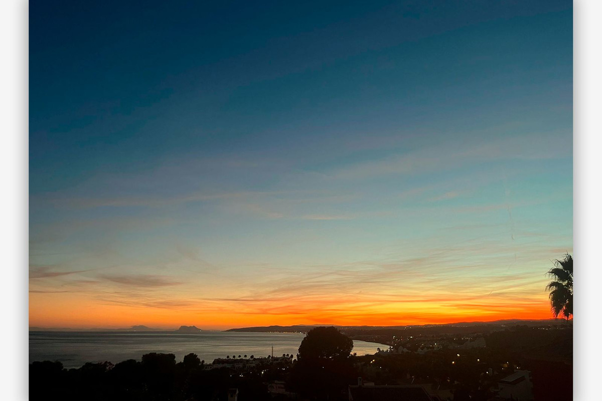 Construite sur un terrain d'angle de 914 mètres carrés, cette maison comprend au rez-de-chaussée un hall d'entrée, un salon avec cheminée et une magnifique bibliothèque qui confère du cachet à la pièce. Ce salon s'ouvre sur le jardin et une terrasse arrière vitrée, idéale pour profiter d'une agréable température en toute saison. Une salle à manger spacieuse jouxte la cuisine fonctionnelle avec buanderie et accès au jardin latéral et à l'espace barbecue. On y trouve également une pièce donnant sur le jardin, pouvant servir de bureau ou de chambre, ainsi que des toilettes invités. Le premier étage abrite une suite parentale spectaculaire avec de nombreux placards intégrés et une salle de bains privative avec douche, ainsi qu'une grande terrasse vitrée offrant une vue panoramique sur la mer. Trois autres chambres fonctionnelles et une salle de bains complètent cet étage. Accessible directement depuis la maison et par une entrée indépendante depuis l'extérieur, le niveau inférieur comprend une pièce de 45 mètres carrés aménagée en studio avec sa propre salle de bains. Cet espace lumineux et indépendant offre un accès direct à la piscine et au magnifique jardin arboré qui entoure la propriété. Les vues spectaculaires, qui changent tout au long de la journée, notamment au lever et au coucher du soleil sur la côte africaine, sont une caractéristique de cette région en plein essor, idéale pour y vivre à l'année ou pour des escapades de vacances.