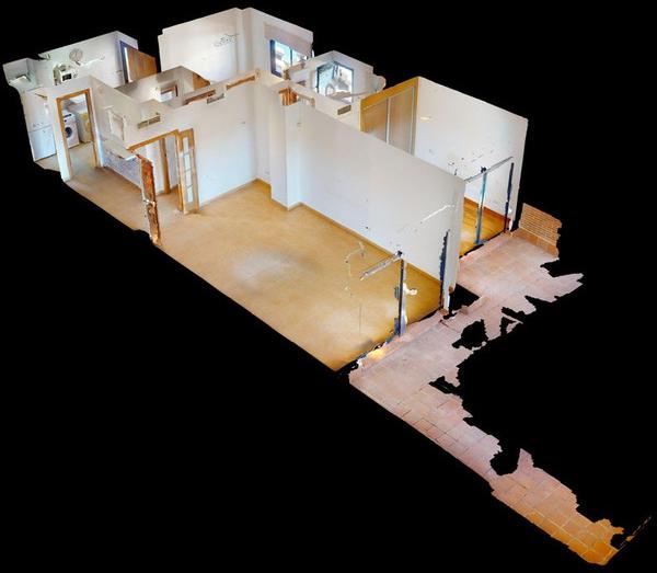 Revêtements de sol : stratifié imitation bois et carrelage en porcelaine.