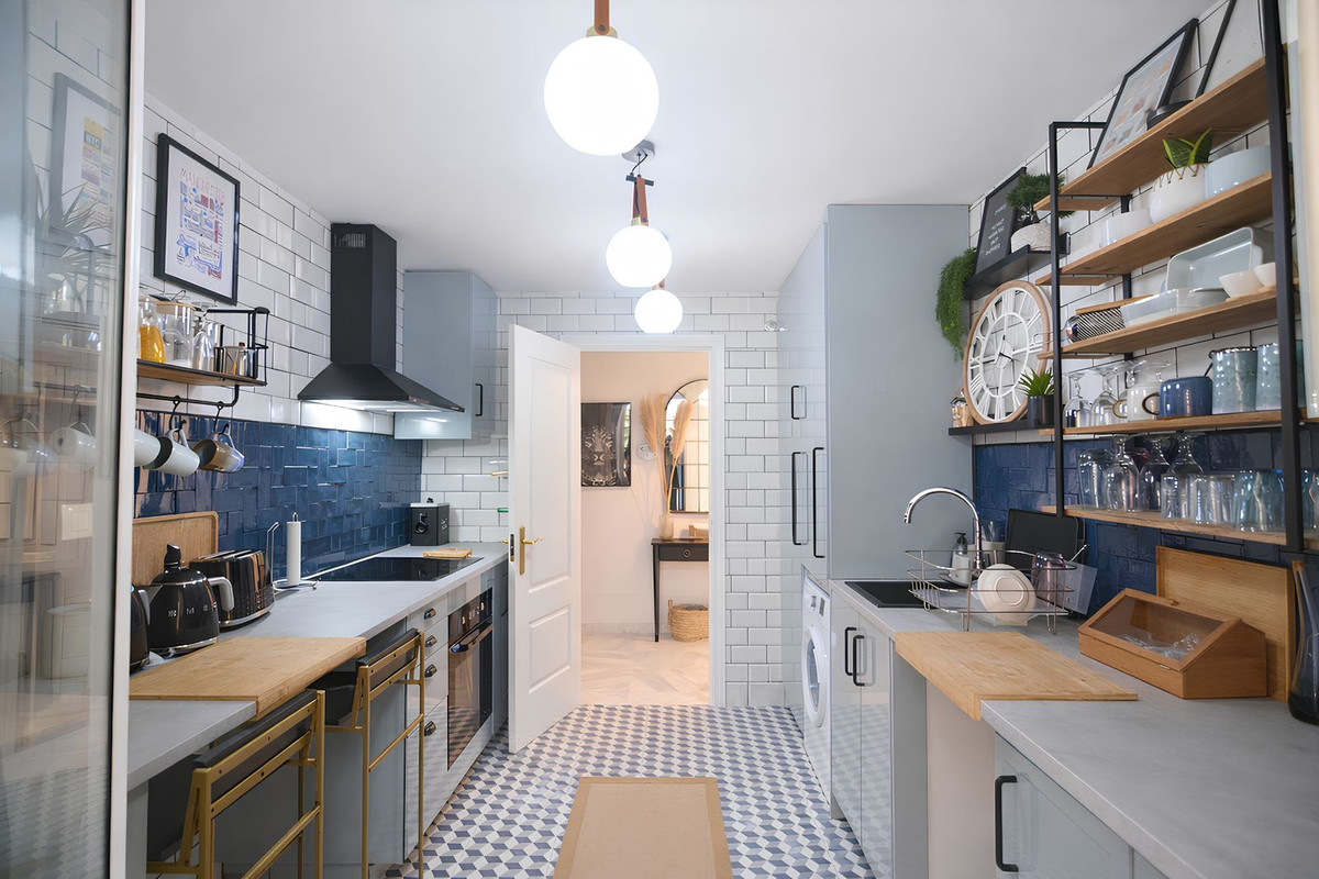 La cuisine est indépendante, entièrement rénovée et comprend une buanderie privée très pratique.