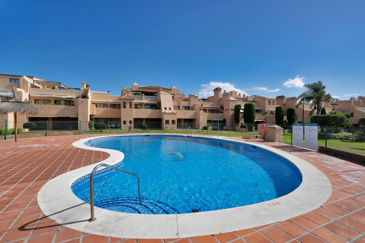Appartement en rez-de-chaussée situé dans le quartier résidentiel exclusif de Cartuja del Golf à Estepona, une propriété avec un excellent potentiel et une superbe opportunité de rénovation pour créer une maison sur mesure dans un cadre résidentiel bien établi, entouré par la nature.