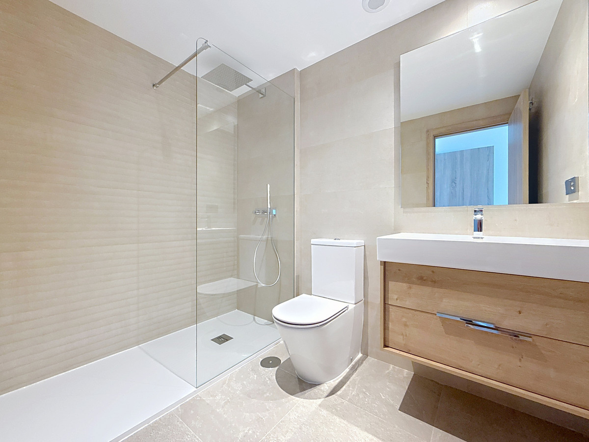 La cuisine est entièrement équipée d'appareils haut de gamme. Les salles de bains sont décorées et meublées dans des tons neutres et apaisants, offrant la simplicité d'un luxe discret.