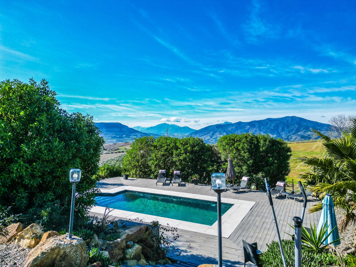 Située à seulement 10 minutes du charmant village d'Álora, la propriété est facilement accessible par un chemin de terre de 1 km et bénéficie d'une intimité totale entourée par la nature et des vues panoramiques sur la campagne.