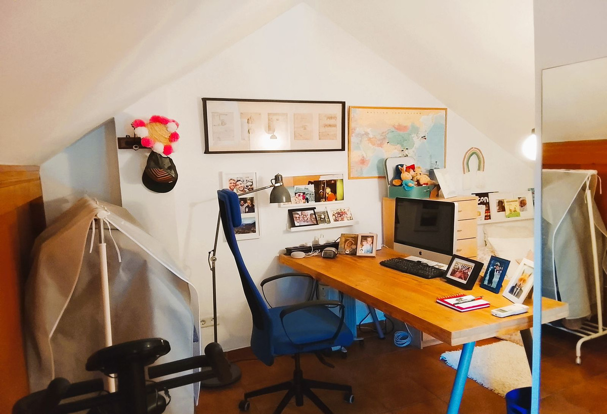 Dans les combles, une autre chambre spacieuse avec un coin bureau et une petite terrasse sur le toit a été aménagée. Toute la maison est climatisée et sécurisée par un système d'alarme moderne.