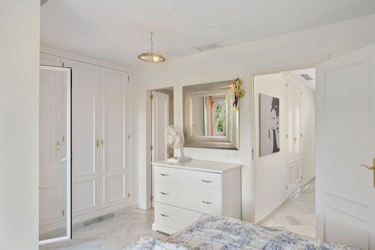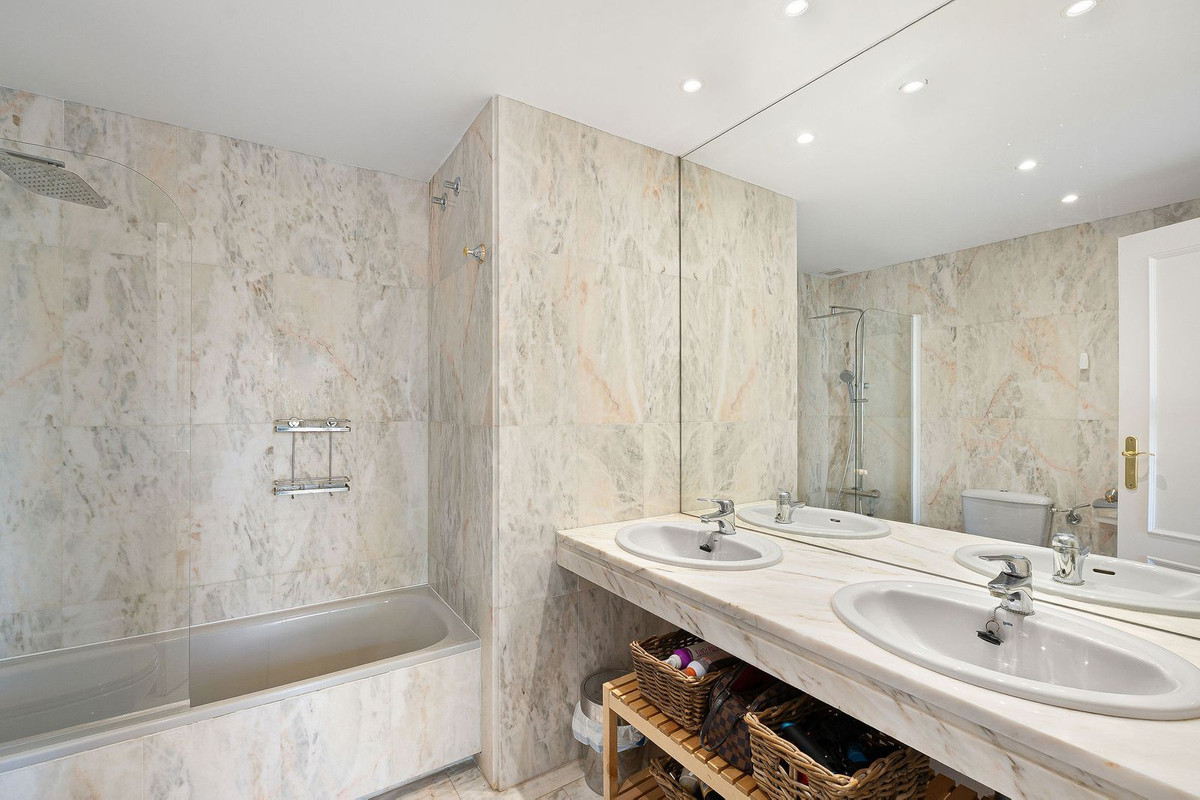 Cette maison de ville de trois chambres, superbement présentée, s'étend sur trois niveaux spacieux et allie confort, espace et emplacement idéal au cœur de Nueva Andalucía. Un large choix de restaurants, cafés, bars et boutiques est accessible à pied, tandis que Puerto Banús, ses plages de sable fin et ses parcours de golf renommés sont à quelques minutes seulement. Le rez-de-chaussée comprend une cuisine de belles dimensions avec une buanderie séparée et un espace de vie en demi-niveau avec cheminée. Des portes s'ouvrent sur une terrasse privée donnant directement sur les jardins communs et la piscine. Chacune des trois chambres spacieuses dispose d'une terrasse privative. La suite du dernier étage se distingue par sa grande terrasse privée et une terrasse supplémentaire avec barbecue intégré et vue dégagée sur le jardin – idéale pour les repas en plein air et les réceptions. Parmi les autres atouts, citons une allée privée, un garage spacieux, trois salles de bains attenantes et des toilettes invités. Située au sein du prestigieux complexe résidentiel El Palmeral, composé de seulement 46 maisons de ville, cette propriété offre à ses résidents deux piscines, un jacuzzi extérieur chauffé, un sauna, une salle de sport et de magnifiques jardins entretenus, le tout dans un cadre sécurisé et paisible. Une superbe opportunité d'acquérir une grande maison dans l'un des quartiers les plus prisés de Marbella.