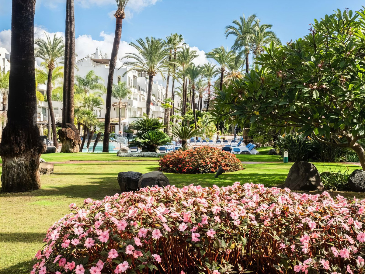 * Complexe emblématique de style village blanc andalou avec de magnifiques jardins subtropicaux soigneusement entretenus, agrémentés d'allées, d'étangs, de cours d'eau et de fontaines aux influences arabes et mauresques.
