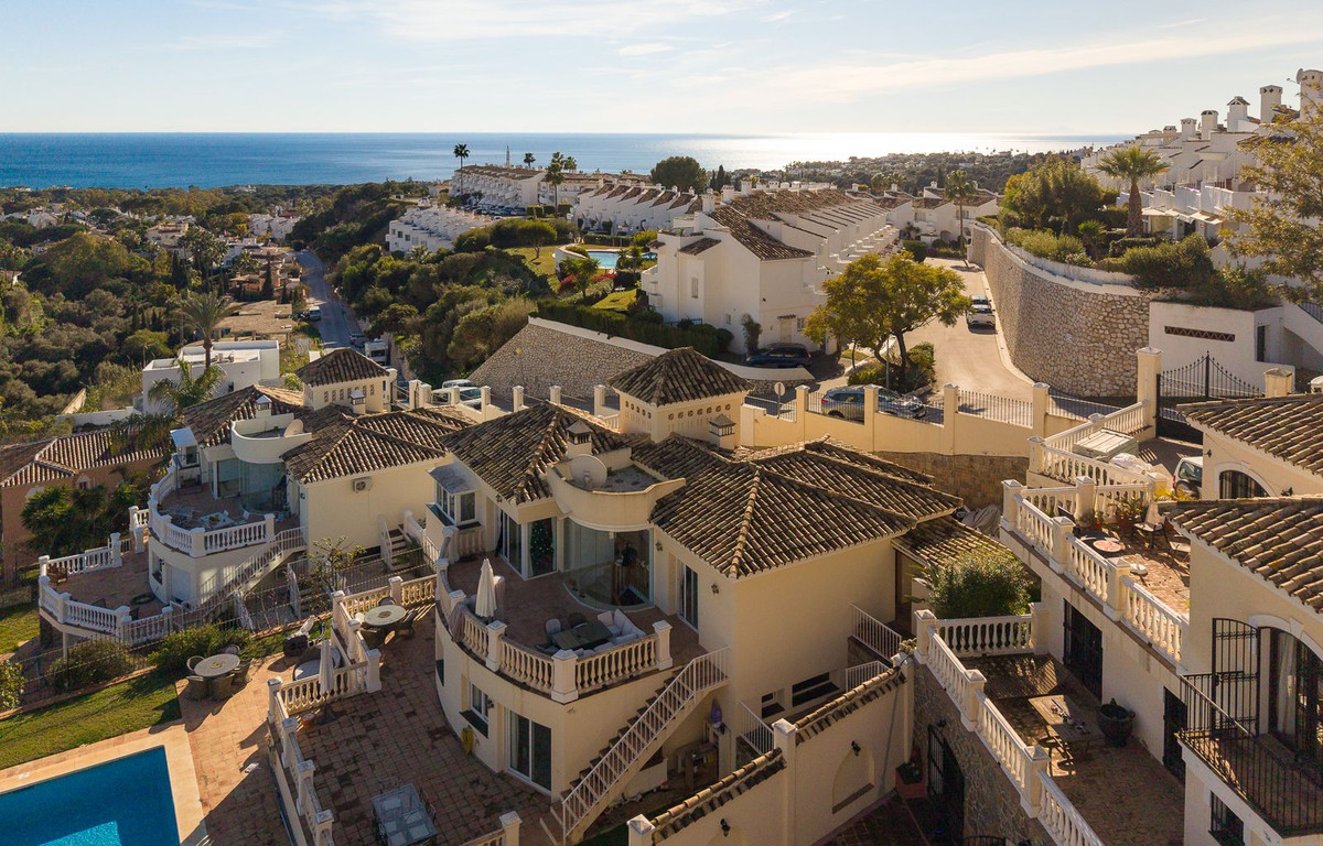 Située en position dominante et prestigieuse, cette villa individuelle d'exception offre un mélange raffiné d'élégance, de confort et de vues panoramiques imprenables sur la mer. Présentée en excellent état, cette propriété est un superbe exemple de vie de qualité dans l'un des quartiers résidentiels les plus prisés de Calahonda.