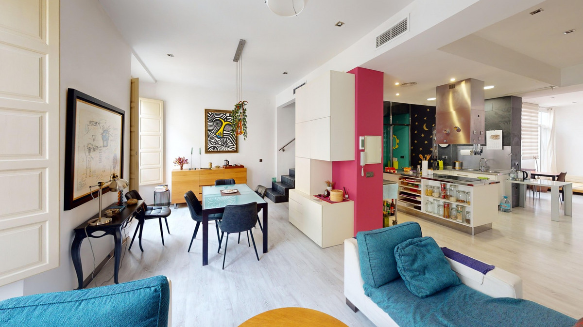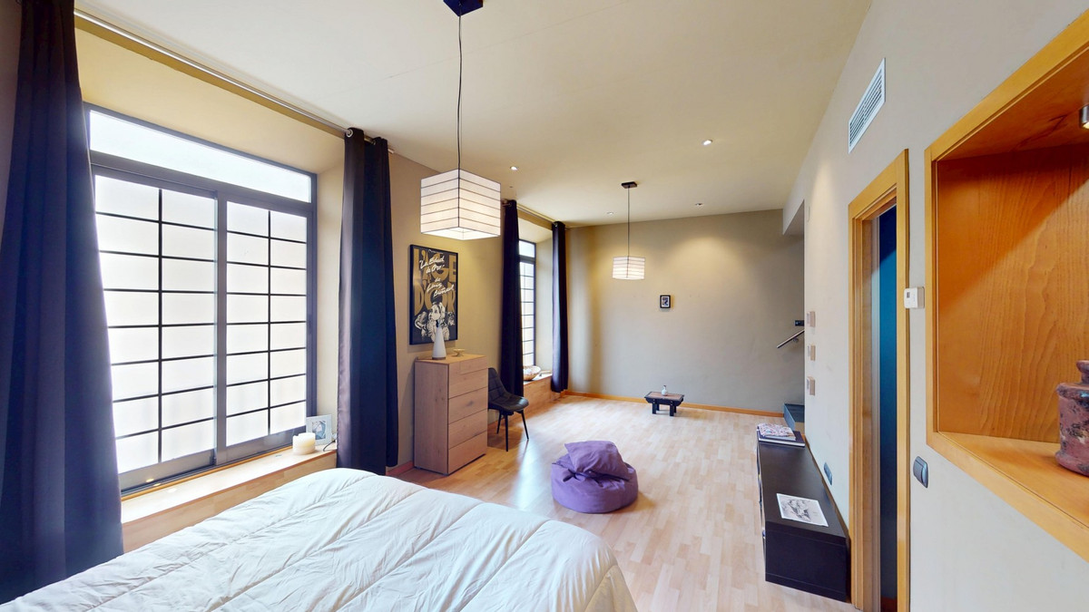 Au cœur même de Malaga, à deux pas de l'emblématique Plaza de la Merced, cette exceptionnelle maison de ville de quatre étages avec solarium offre 330 m² de surface habitable et une polyvalence extraordinaire dans l'un des quartiers les plus prisés de la ville. Le rez-de-chaussée est actuellement aménagé en espace de type bureau, mais son véritable atout réside dans sa flexibilité. Il peut facilement se transformer en un vaste séjour, un bureau privé, une salle de sport, un garage, ou combiner ces usages, s'adaptant ainsi parfaitement aux besoins d'un mode de vie résidentiel ou mixte. Le premier étage constitue le cœur de la maison, avec une cuisine de style industriel qui s'ouvre harmonieusement sur le séjour et la salle à manger. On y trouve également un espace séparé, actuellement utilisé comme coin détente, avec accès à une petite terrasse, ainsi que des toilettes invités. Le deuxième étage est dédié à la suite parentale, offrant une chambre spacieuse, un grand dressing et une élégante salle de bains privative. De là, on accède directement à une terrasse privée de belle taille, idéale pour profiter du climat de Malaga en toute intimité. Au quatrième étage, une seconde chambre avec salle de bains privative et un grand dressing offre confort et indépendance. Ce niveau offre également la possibilité d'agrandir l'espace grâce à la toiture mansardée, ajoutant ainsi du potentiel à cette demeure déjà impressionnante. Un solarium spectaculaire, offrant une vue imprenable sur la ville et les montagnes, couronne la propriété. Cet espace sur le toit comprend une terrasse couverte avec une cuisine entièrement équipée, idéale pour recevoir, se détendre ou admirer les couchers de soleil sur Malaga. La maison est préparée pour l'installation d'un ascenseur, la gaine étant déjà construite, et dispose de la climatisation dans toutes les pièces, garantissant un confort optimal toute l'année. Une propriété unique alliant espace, cachet et potentiel, idéalement située en plein centre-ville, parfaite comme résidence privée de prestige ou investissement locatif de grande valeur au cœur de Malaga. Nous serons ravis de vous présenter prochainement cette propriété de rêve, en personne ou par visite virtuelle. Car ce monde est unique, à l'image de notre Axarquía. En Andalousie. Sur la Costa del Sol. Ici, sous le soleil…