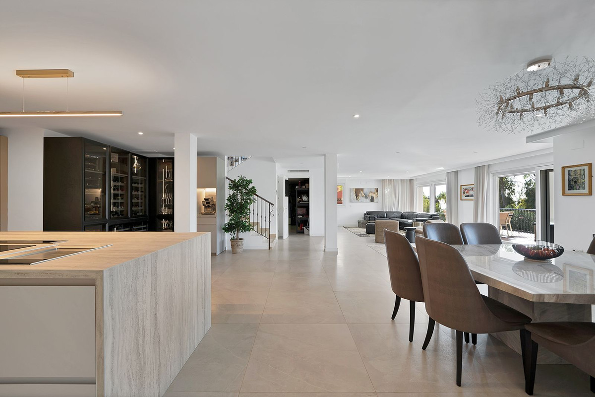 Occupant un terrain généreux de 923 m² et offrant environ 500 m² de surface habitable élégamment aménagée, cette villa, construite en 2011, a depuis été entièrement rénovée intérieurement avec un souci du détail irréprochable. Si l'intérieur reflète une élégance moderne, l'extérieur reste fidèle à ses racines andalouses, préservant le charme et l'authenticité de l'architecture traditionnelle du sud de l'Espagne.