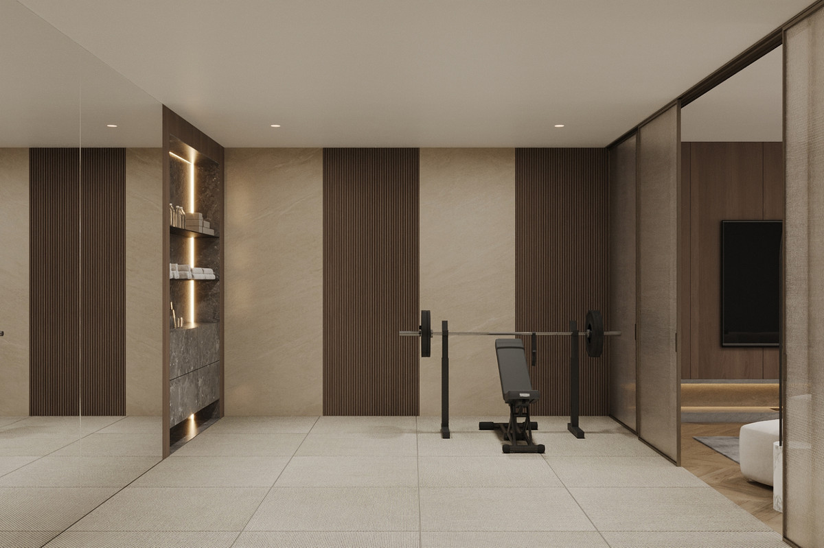 - Des baies vitrées du sol au plafond, qui mettent en valeur la lumière naturelle et l'ouverture spatiale.