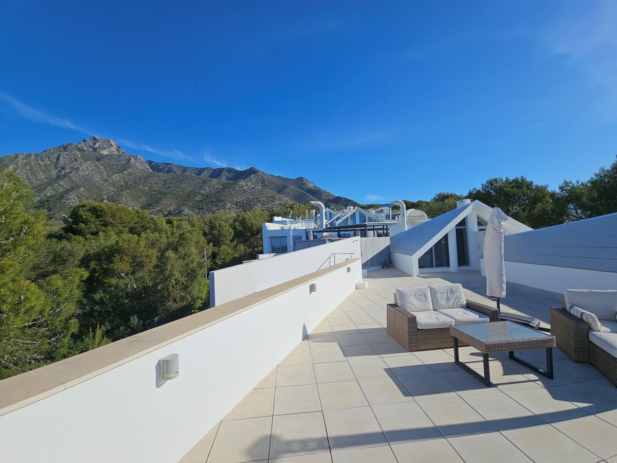 Espace extérieur : Une très grande terrasse sur le toit offre une vue panoramique sur la Costa del Sol, l’Afrique et la magnifique chaîne de montagnes de la Sierra Blanca en arrière-plan. Une terrasse spacieuse se trouve également au rez-de-chaussée.