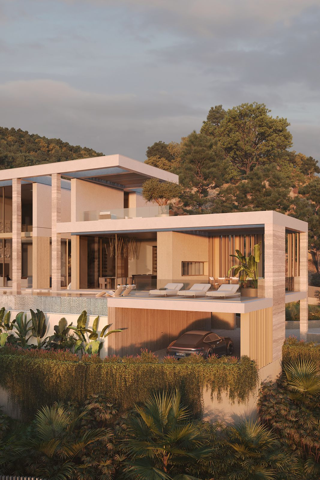 La villa offre une surface habitable de 647 m² sur un terrain généreux de 2 167 m², agencée de façon à optimiser l'espace, la luminosité et l'intimité. Elle comprend 5 chambres spacieuses et 7 salles de bains, complétées par quatre terrasses qui favorisent une transition harmonieuse entre l'intérieur et l'extérieur. Une piscine privée et des espaces extérieurs aménagés agrémentent les aménagements extérieurs.