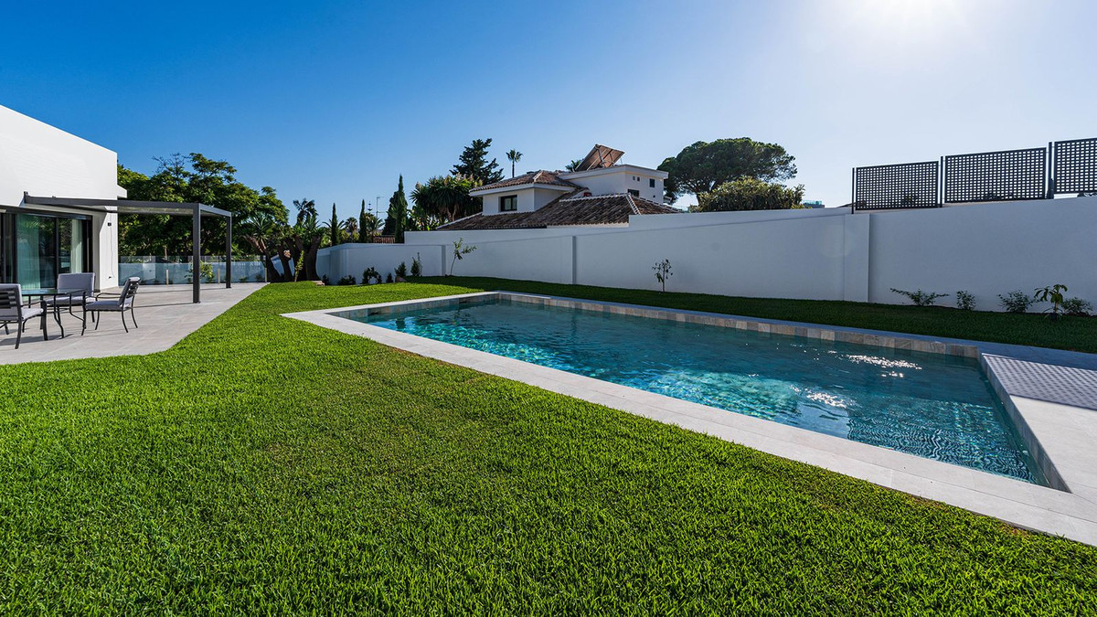 Construite en 2024, cette propriété unique allie intimité, élégance, design contemporain et un emplacement exceptionnel, à quelques minutes de la plage et des commodités haut de gamme. Sur un terrain de 1 485 m² et avec 420 m² de surface habitable, cette villa offre espace, luminosité naturelle et confort optimal. Répartie sur trois niveaux, elle comprend au rez-de-chaussée un hall d'entrée majestueux, un magnifique séjour-salle à manger avec plusieurs espaces distincts s'ouvrant harmonieusement sur l'extérieur grâce à ses larges baies vitrées reliant les vastes terrasses, la piscine et le jardin, des toilettes invités, une cuisine entièrement meublée et équipée, une buanderie, une chambre de service avec salle de bains attenante à la cuisine, et deux chambres spacieuses avec chacune sa propre salle de bains. Le premier étage abrite une grande suite parentale avec accès à une vaste terrasse, comprenant une grande chambre, un dressing et une salle de bains, ainsi qu'une autre chambre avec salle de bains privative. Le deuxième étage offre une grande terrasse solarium avec vue panoramique sur Marbella. Un grand parking est disponible sur la propriété.
