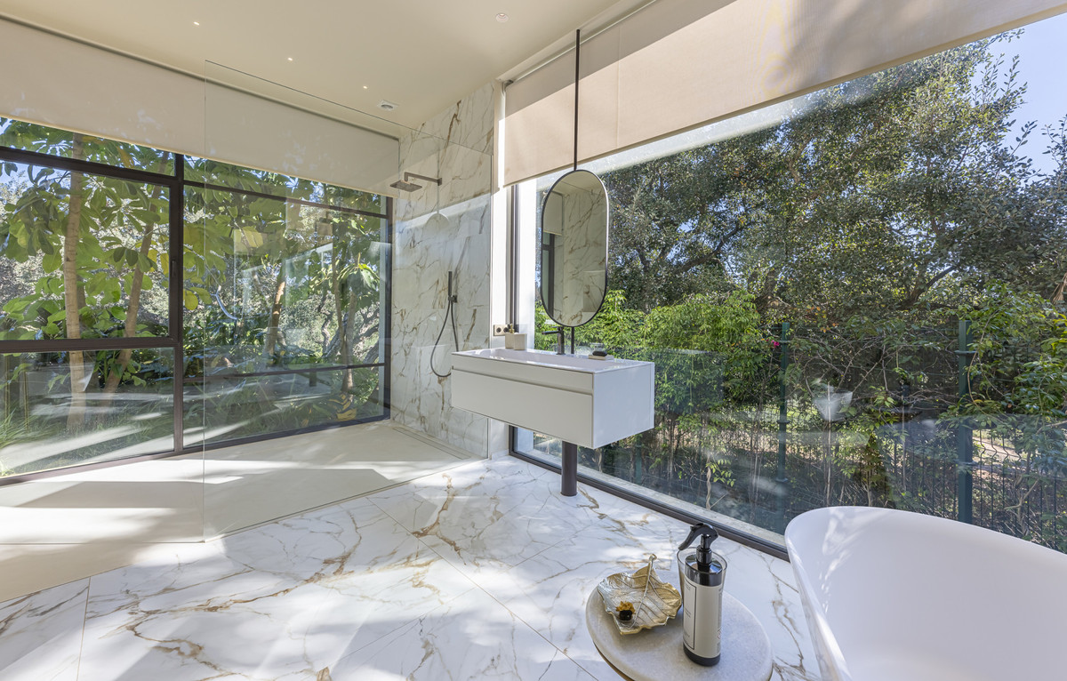 Accessible par une allée paysagée et paisible, la résidence occupe un vaste terrain de plus de 3 300 m², alliant design moderne et environnement naturel. L’architecture de la villa privilégie des lignes épurées, des intérieurs baignés de lumière et une fluidité intuitive entre espaces intérieurs et extérieurs, une caractéristique des propriétés de luxe contemporaines du segment haut de gamme de Sotogrande.