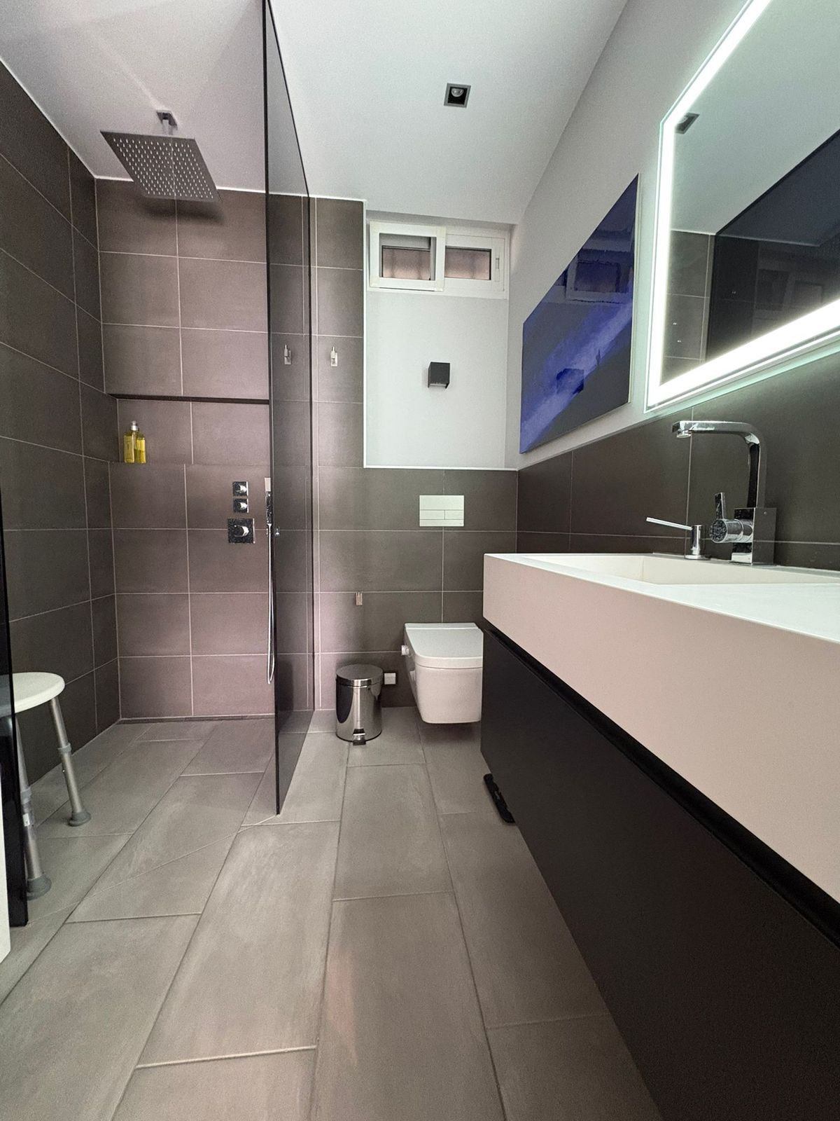 Dining room with the living room next to it, sliding door to the terrace. Spacious bedroom with sliding door to the terrace. The best materials have been used, both for the kitchen cabinets, appliances, worktop and lighting. New floors throughout the flat, top quality sliding doors that are heat and cold resistant. Impecable seaviews 180 degrees.