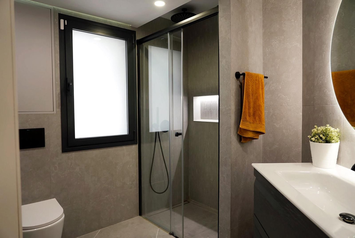 This bright property offers 117 m² of built area and perfectly combines traditional Andalusian charm with modern Mediterranean living. The apartment features 3 spacious bedrooms and 2 bathrooms, with a well-designed layout that allows natural light to flow throughout the home. The living room opens seamlessly onto a pleasant private terrace, creating the perfect space to relax, enjoy outdoor breakfasts or unwind while overlooking the beautifully maintained communal gardens and the iconic La Concha mountain.