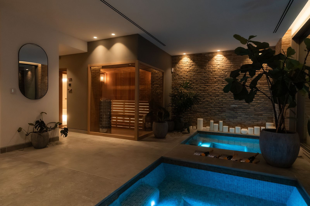 Cette villa dispose d'un spa privé avec piscine intérieure chauffée, sauna, hammam et espace massage. Une salle de sport entièrement équipée avec du matériel Eleiko vous permet de rester en forme sans quitter la villa, tandis que la vaste salle de divertissement offre un cadre idéal pour des soirées cinéma, des jeux ou simplement des moments de détente en famille ou entre amis.