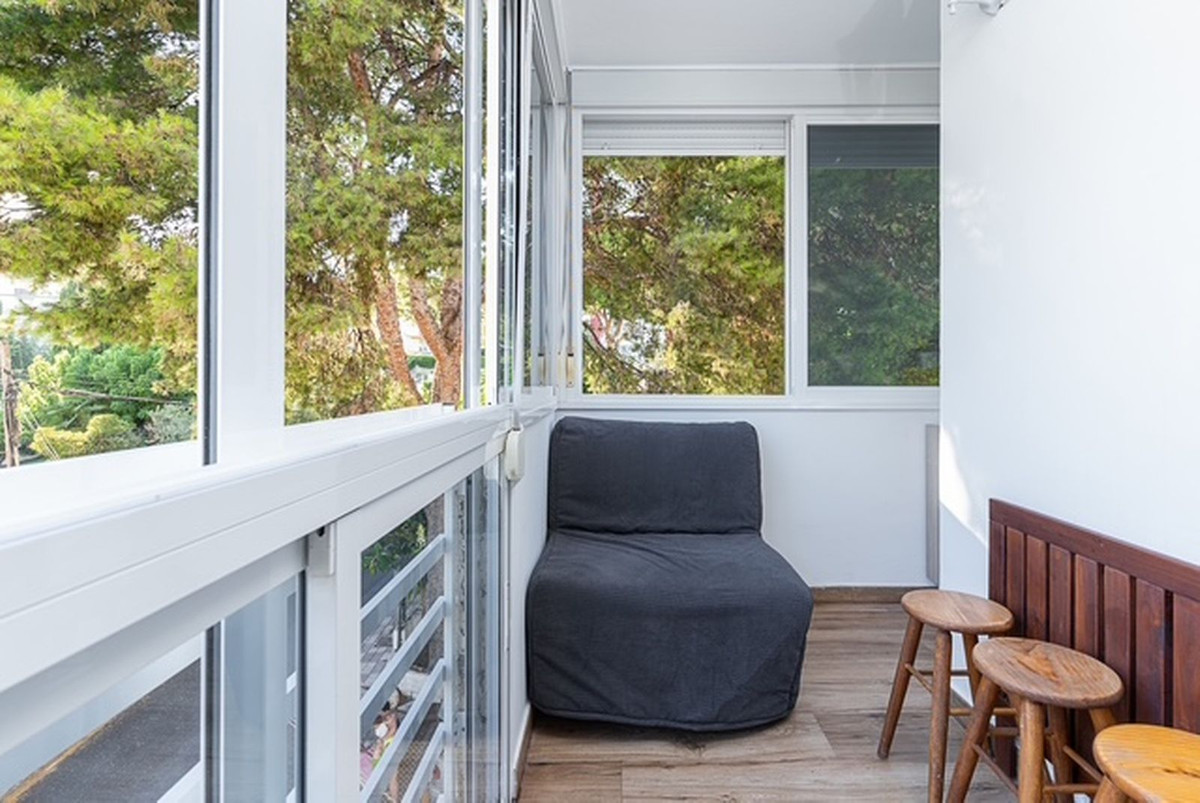 Studio de 35 m² + terrasse fermée de 7 m² avec vue sur la mer, entièrement rénové et meublé dans un style moderne et fonctionnel.