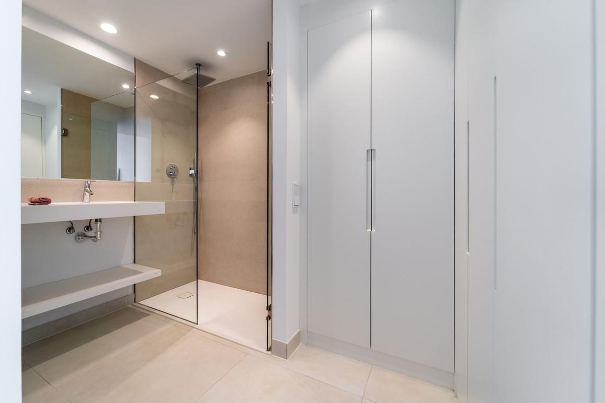 Élégant appartement orienté est à Higuerón Ouest, comprenant 2 chambres, 2 salles de bains, un spacieux séjour/salle à manger, une cuisine américaine entièrement équipée avec électroménager Bosch, une buanderie avec lave-linge/sèche-linge, une agréable terrasse de 18 m² avec vue mer partielle et une terrasse arrière de 6 m² accessible depuis les deux chambres. Climatisation réversible, interphone vidéo, domotique, pré-installation pour système d'alarme, chauffage au sol dans les deux salles de bains. Deux places de parking et un cellier sont inclus.