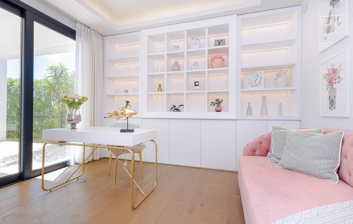 Cette propriété comprend six chambres spacieuses, dont une actuellement aménagée en bureau, offrant une grande flexibilité pour un mode de vie moderne, que ce soit pour la vie de famille, les invités ou le télétravail. Des lignes architecturales épurées, des matériaux de haute qualité et des tons neutres créent une résidence sophistiquée, prête à emménager.
