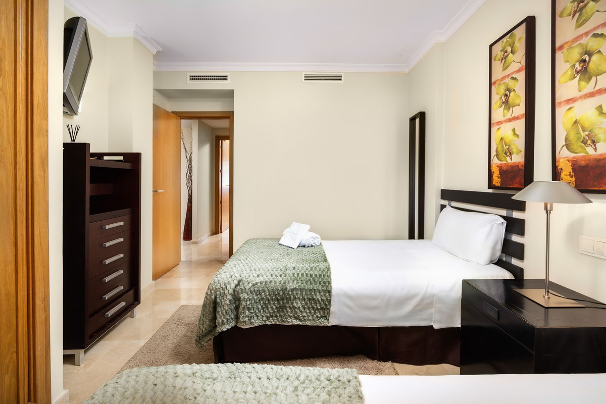 Magnifique appartement de luxe au premier étage, à vendre dans la résidence Hotel Resort, située entre La Cala et Fuengirola. Cet élégant appartement de deux chambres et deux salles de bains, construit en 2006, se trouve dans une résidence de prestige sécurisée 24h/24.