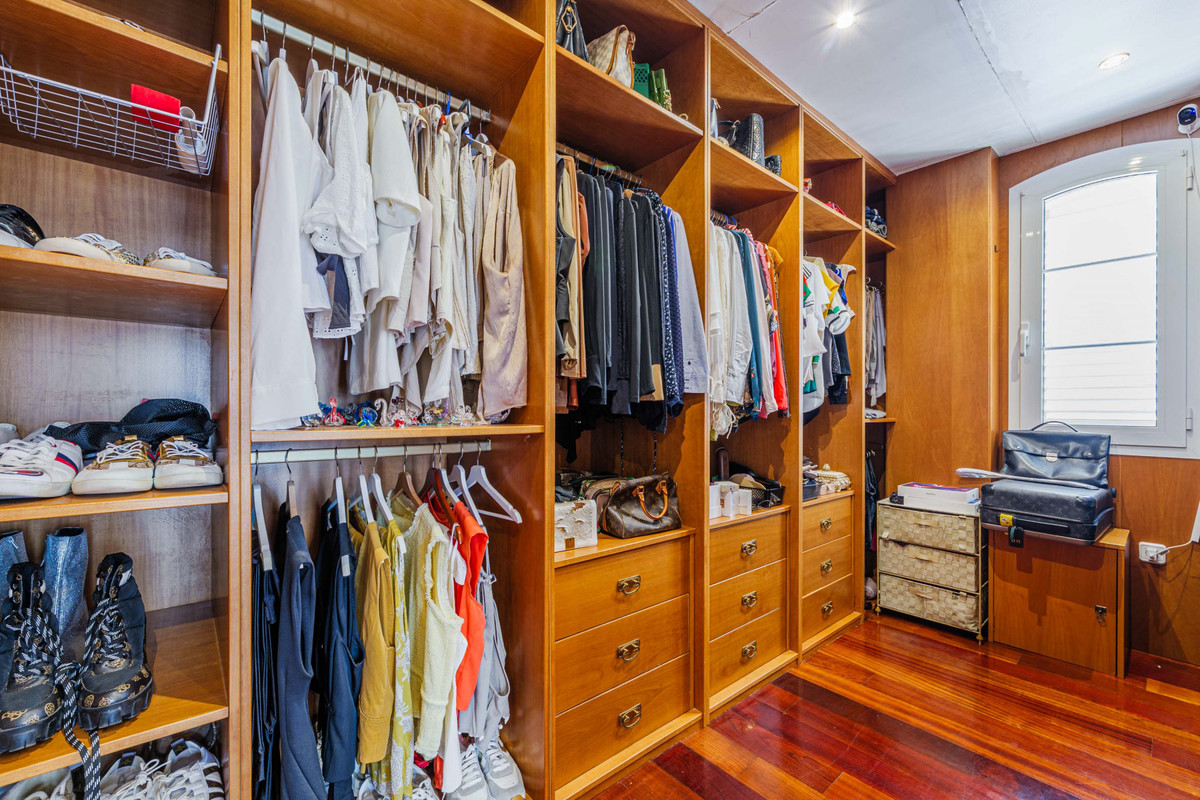 À l'étage, l'aile droite de la maison comprend une chambre avec dressing, salle de bains attenante et terrasse privée, tandis que l'aile gauche abrite deux chambres supplémentaires, un dressing séparé et une salle de bains complète. Le sous-sol comprend une cave à vin accueillante avec cheminée et cuisine équipée, un cellier, trois chambres, une salle de bains et un accès direct au garage couvert et à la pièce de vie principale. Parmi les atouts de cette propriété, on note la climatisation, un système d'arrosage automatique, des panneaux solaires, des sols en marbre blanc et beige, du parquet dans les chambres, des fenêtres cintrées en aluminium et un dallage extérieur imitation pierre.