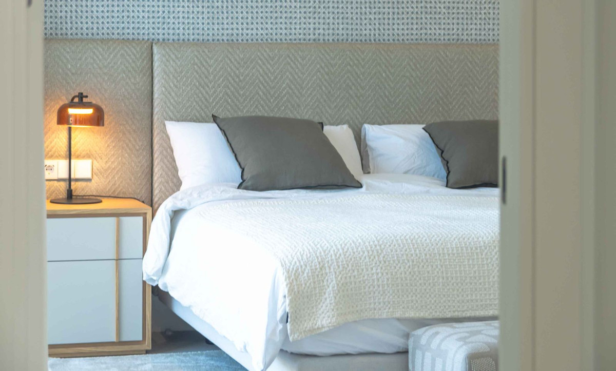 L'espace de vie principal se présente comme un espace ouvert où le salon, la salle à manger et la cuisine entièrement équipée communiquent visuellement et fonctionnellement. De larges baies vitrées coulissantes prolongent l'intérieur vers la terrasse, renforçant ainsi le lien entre intérieur et extérieur. La cuisine, dotée d'électroménagers intégrés et d'un îlot central, est conçue pour un usage quotidien et pour recevoir. Des détails subtils au plafond et l'harmonie des matériaux contribuent à une circulation spatiale sereine et cohérente.