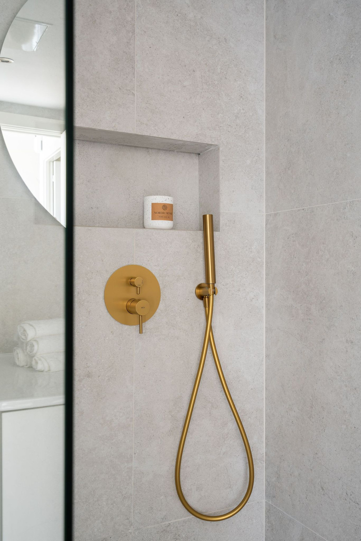 La cuisine élégante et entièrement équipée comprend des appareils électroménagers neufs et des finitions modernes, tandis que les deux salles de bains raffinées sont dotées d'un chauffage au sol pour un confort optimal toute l'année. La propriété offre trois chambres spacieuses, toutes équipées de placards intégrés avec éclairage LED, ainsi qu'un éclairage indirect discret au plafond.