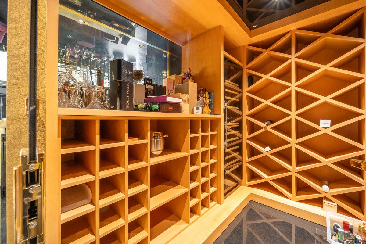 La maison principale, d'une superficie construite de plus de 1 200 m², se déploie sur trois niveaux desservis par un ascenseur. Chaque pièce a été conçue pour offrir confort, luminosité et espaces ouverts, en harmonie avec l'extérieur. Au rez-de-chaussée, un vestibule mène à un salon aux hauts plafonds et aux baies vitrées panoramiques. Attenants se trouvent un bureau, une chambre d'amis, une salle à manger séparée, une salle familiale et une cuisine entièrement équipée. Ces espaces donnent directement sur le jardin et la piscine, permettant de profiter pleinement de la vie dedans-dehors en toute saison. On notera également une terrasse vitrée et une suite d'invités indépendante. L'étage supérieur abrite la suite parentale, avec terrasse privative et vue imprenable sur la Méditerranée, ainsi que trois autres chambres avec salle de bains privative. Au niveau inférieur se trouvent un appartement indépendant et un espace de loisirs complet comprenant une salle de sport, un sauna, une cave à vin, une salle de cinéma et des espaces de rangement.