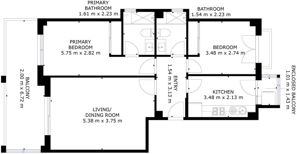 - 2 salles de bains modernes, dont une attenante à la chambre principale.