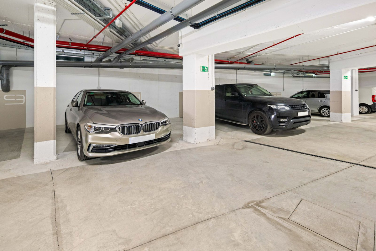 La propriété comprend deux places de parking privées pré-câblées pour véhicules électriques et un local de rangement, garantissant confort et praticité.