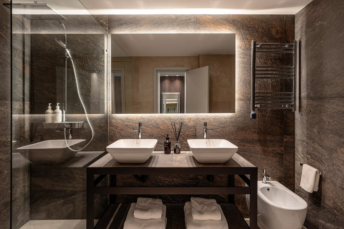 La propriété comprend six chambres spacieuses, chacune dotée d'une salle de bains privative, offrant confort et intimité aux résidents et à leurs invités. La suite parentale est conçue comme un véritable havre de paix, avec un dressing et une salle de bains digne d'un spa, comprenant un sauna, un hammam et une baignoire balnéo.