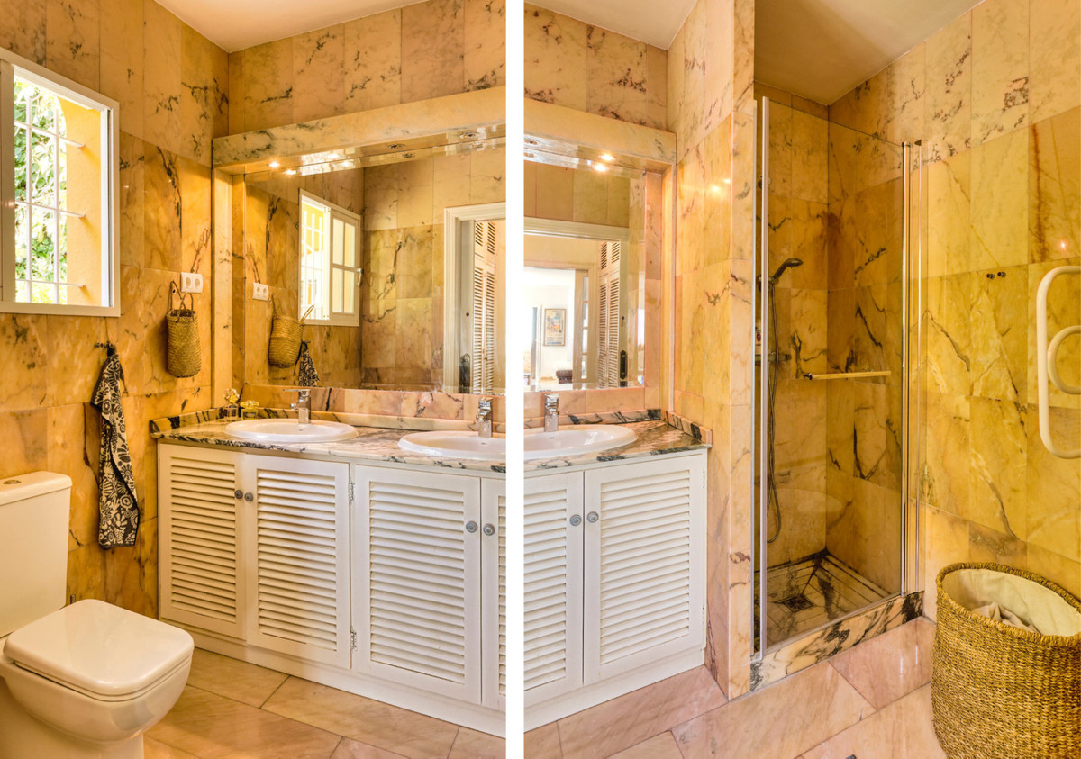 La villa est répartie sur deux étages et comprend 5 chambres et 4 salles de bains, ainsi qu'un appartement indépendant pouvant être loué ou offrant une intimité appréciable lors de la visite d'amis ou de famille. Toutes les chambres sont équipées d'une climatisation réversible individuelle.