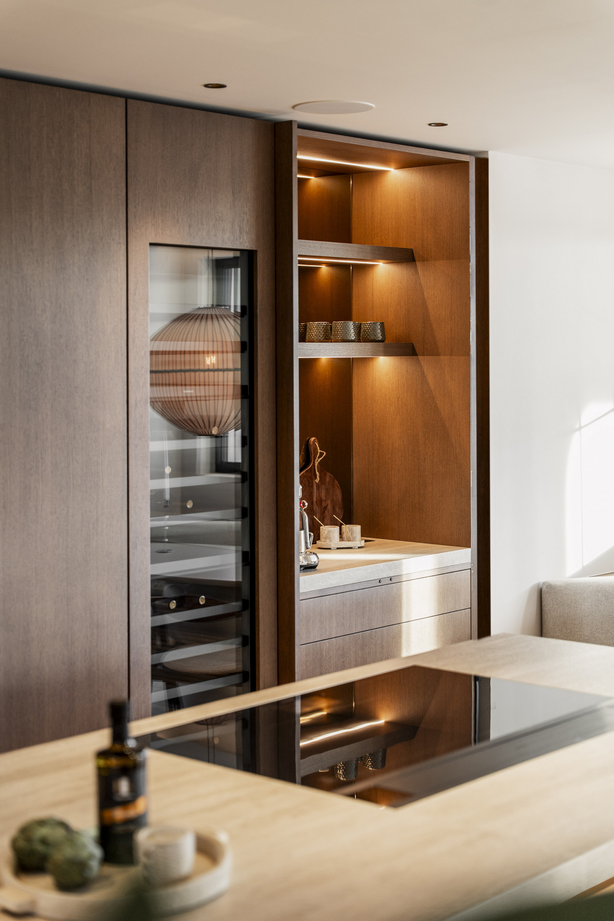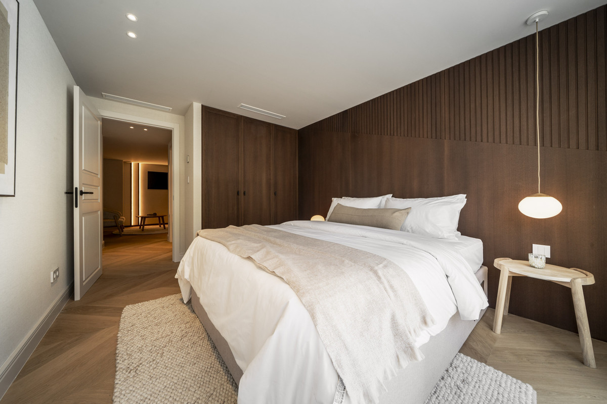 À l'intérieur, la maison se distingue par un choix élégant de matériaux, notamment un parquet à chevrons qui confère chaleur et raffinement à chaque pièce. La cuisine Danespan allie design épuré et fonctionnalité, créant un espace convivial et chaleureux, idéal pour le quotidien et les réceptions. La villa offre cinq chambres spacieuses, judicieusement réparties pour le confort de la famille et des invités. L'espace bien-être comprend une piscine intérieure, un sauna et un hammam, offrant une expérience de spa privée au sein même de la maison.