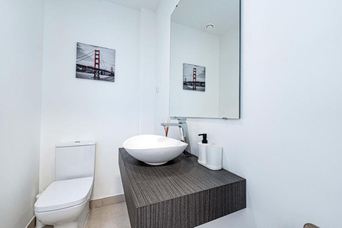 À l'étage, le premier niveau comprend trois chambres, dont une luxueuse suite parentale avec salle de bains privative, ainsi que deux autres chambres partageant une salle de bains moderne. Le dernier étage est dédié à une quatrième chambre avec sa propre salle de bains et son dressing, ainsi qu'à un accès à une spectaculaire terrasse sur le toit, idéale pour recevoir ou simplement admirer la vue imprenable sur la côte.