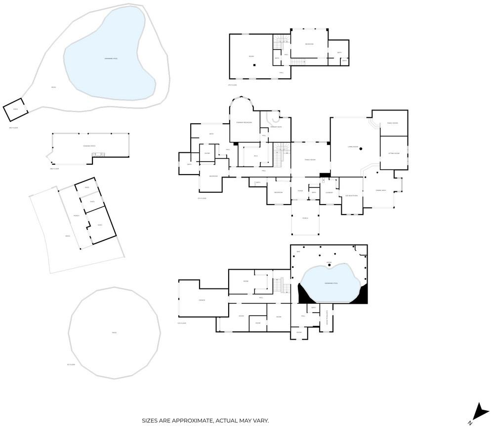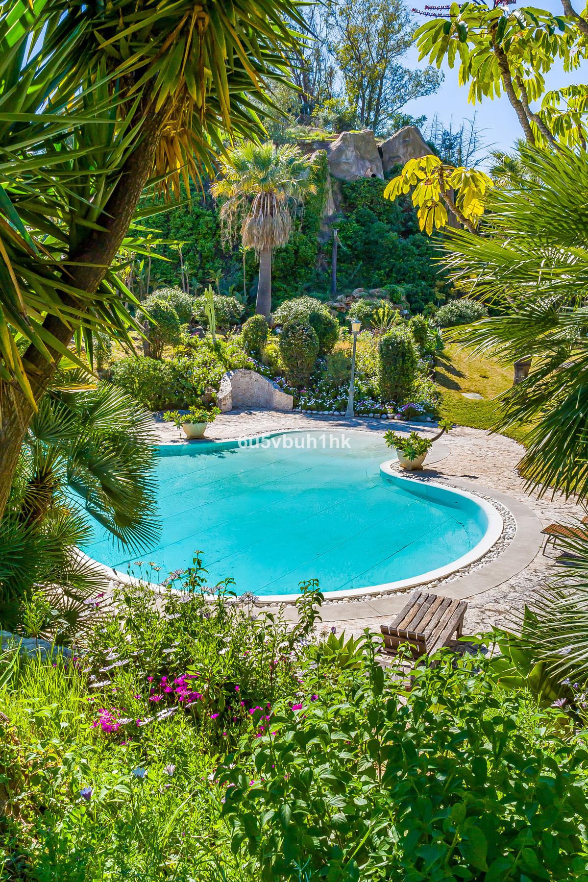 À l'extérieur, la piscine azur avec sa propre cascade et son lit balinais vous transportera sur une plage des Caraïbes ; une montagne privée avec une grotte et une cascade ; une rivière avec un pont en bois ; une écurie avec un manège de dressage ; et bien d'autres recoins magiques vous inviteront à vous perdre dans les plus de 25 000 m² de jardins.
