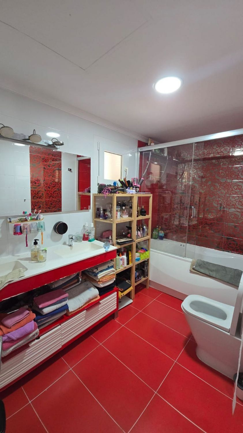 On y trouve trois chambres avec placards et climatisation, dont une avec une terrasse privée fermée, ainsi qu'une salle de bains complète à l'étage.