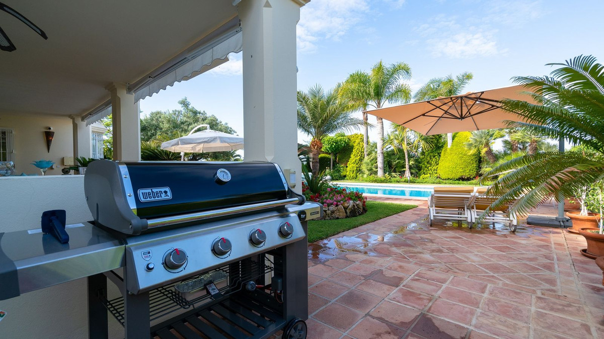Cette villa à Elviria, avec sa piscine chauffée, est idéale pour ceux qui recherchent espace, confort et intimité. Vous profiterez également d'une sécurité optimale, d'une vue imprenable et de la proximité des plages et des commodités, dans l'un des quartiers les plus prestigieux de Marbella. Vous serez conquis par le charme unique et raffiné de cette villa à Elviria, ses nombreux équipements, sa grande piscine d'eau salée chauffée et sa vue panoramique sur la mer. Un service de ménage de 3 heures par semaine est inclus.
