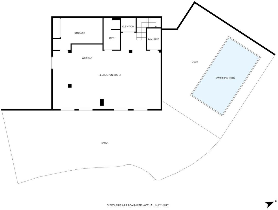 Au niveau inférieur, l'espace de vie comprend un second salon, une cuisine entièrement équipée, une salle de bains et des rangements supplémentaires. Cet espace donne directement sur le jardin et la piscine.