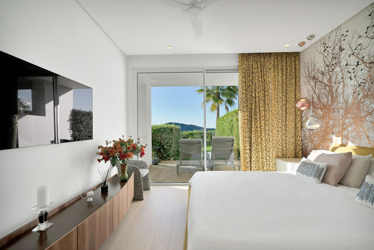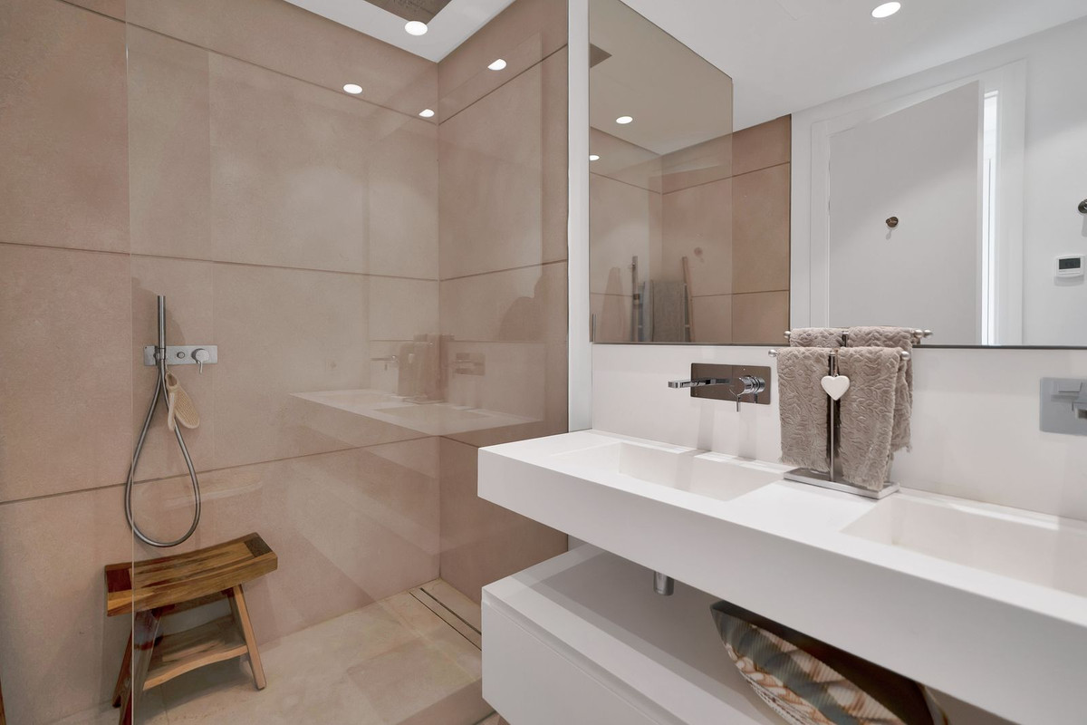 Des baies vitrées du sol au plafond relient les espaces intérieurs aux espaces extérieurs, où le jardin privé et les multiples terrasses offrent un espace généreux pour se détendre, bronzer ou recevoir en toute intimité.