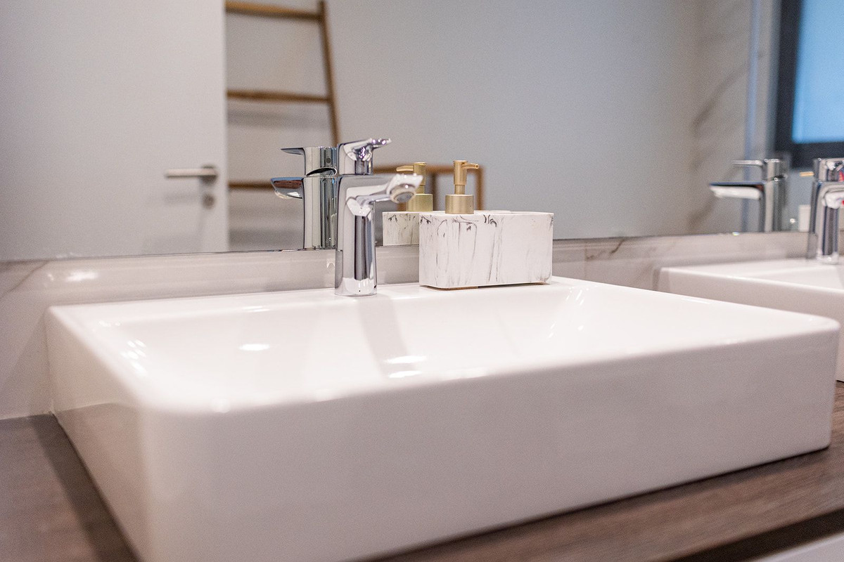 La cuisine entièrement équipée présente des finitions haut de gamme et s'intègre parfaitement à l'espace de vie, ce qui la rend idéale au quotidien comme pour recevoir des invités. Les deux chambres sont spacieuses et dotées de placards intégrés et de salles de bains élégantes à l'esthétique moderne et apaisante.